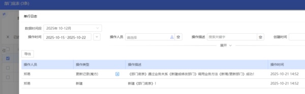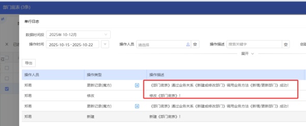 返回元数据至底表,无流程表单录入时显示为空的“部门”字段会返回部门数据,如下图:
