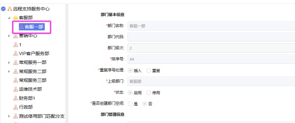 将上级部门为营销中心的运维部,改到市场部下,此时“部门”有值会更新对应的部门,如下图所示:
